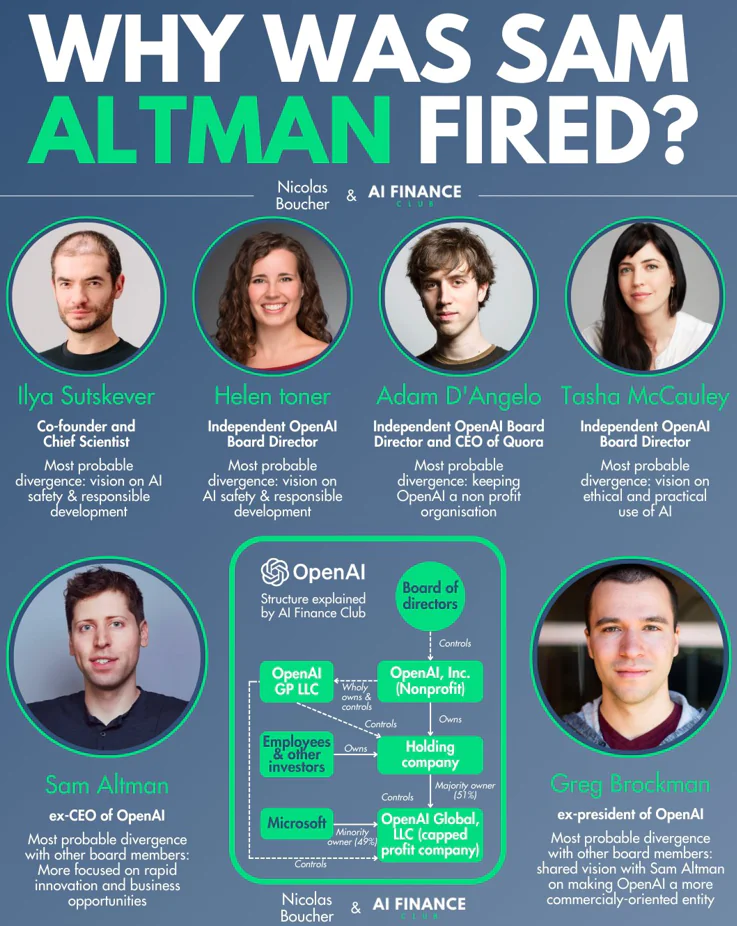 Yesterday, Sam Altman was unceremoniously fired from OpenAI. Greg Brockman announced his departure shortly thereafter.