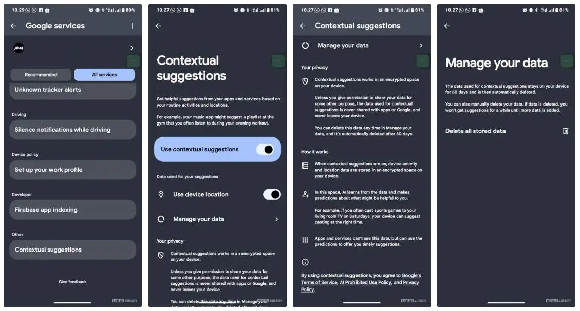 Ustawienia funkcji. Źródło: AndroidAuthorityOpis funkcji wspomina o wykorzystaniu sztucznej inteligencji, choć nie sprecyzowano, czy wymaga ona szczególnie wydajnego sprzętu. Google zapewnia jednak, iż całe przetwarzanie odbywa się lokalnie, w zaszyfrowanej przestrzeni, bez wysyłania danych na zewnętrzne serwery.