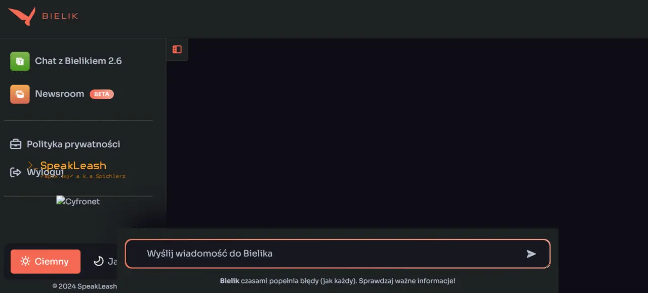 Interfejs Bielika wydaje się dość prosty. Źródło: Bielik.ai.Bielik zaczął rozwijać się szybko, ale bez rozgłosu