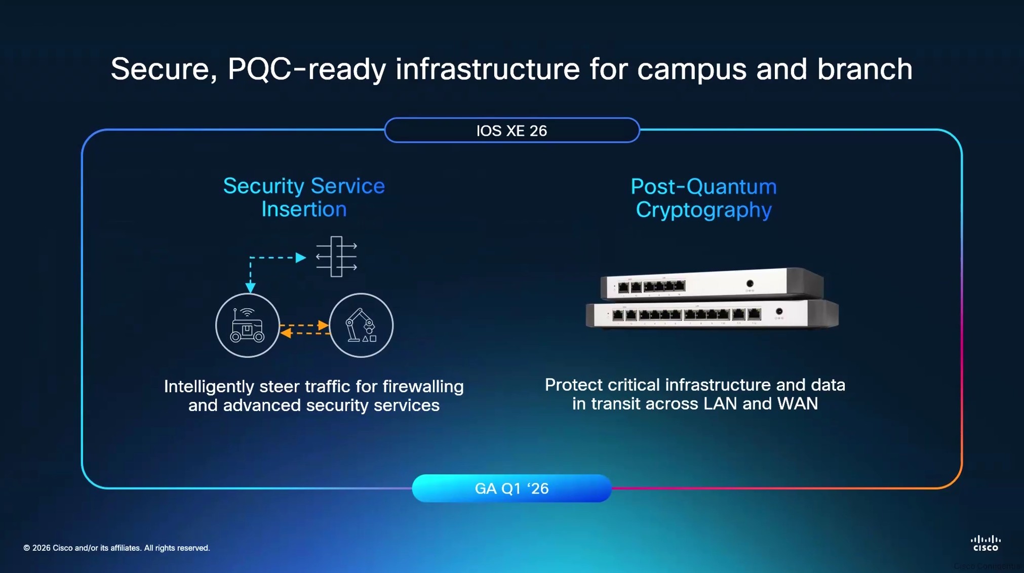 Wszystkie te urządzenia działają pod kontrolą systemu IOS XE 26, który jako pierwszy w branży wprowadza pełną, pełnozakresową kryptografię post-kwantową (PQC). Chroni ona przed atakami typu „zapisz teraz, odszyfruj później” (harvest now, decrypt later), zabezpieczając dane przed przyszłymi komputerami kwantowymi.
