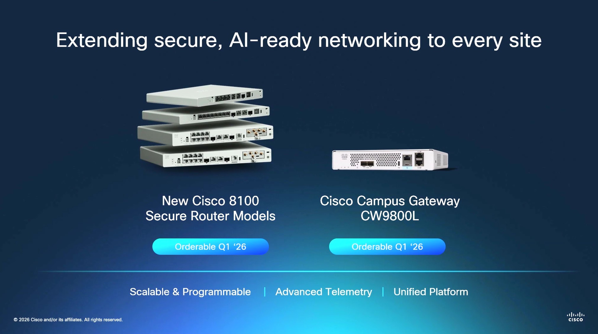 - Dostępne od dziś (10 lutego): Routery serii 8000 i 8100, przełączniki C9000, system IOS XE 26 z kryptografią post-kwantową.