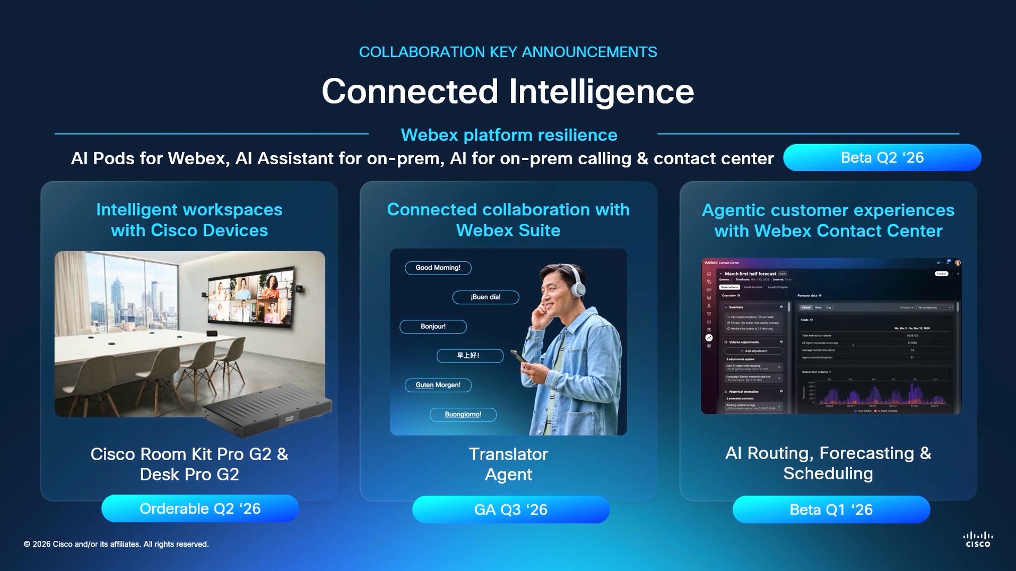 Cisco Live 2026 to demonstracja kompletnego ekosystemu. Firma nie tylko dostarcza urządzenia (G300, P200), ale też inteligencję, która nimi zarządza (AgenticOps) i interfejsy dla ludzi (WebEx).