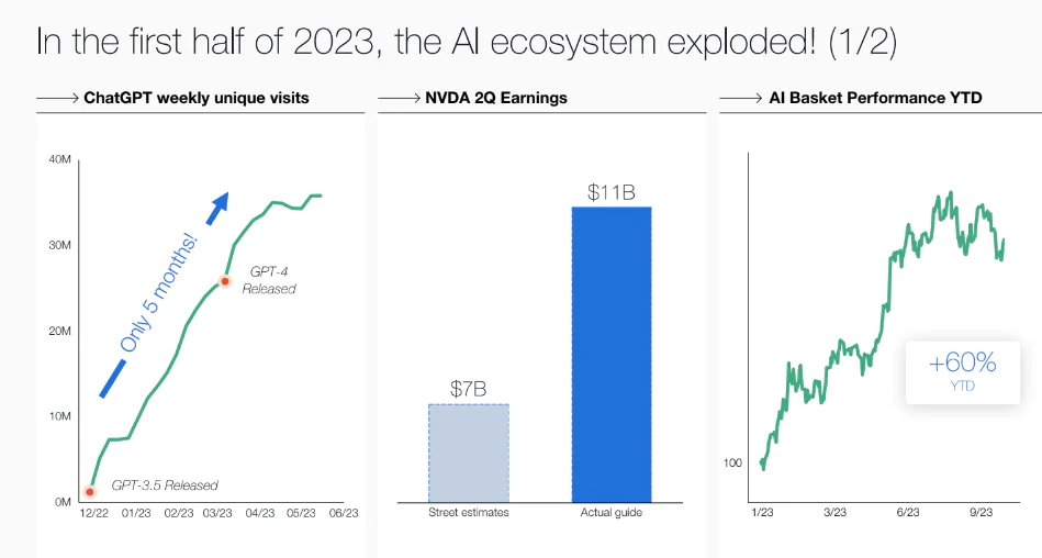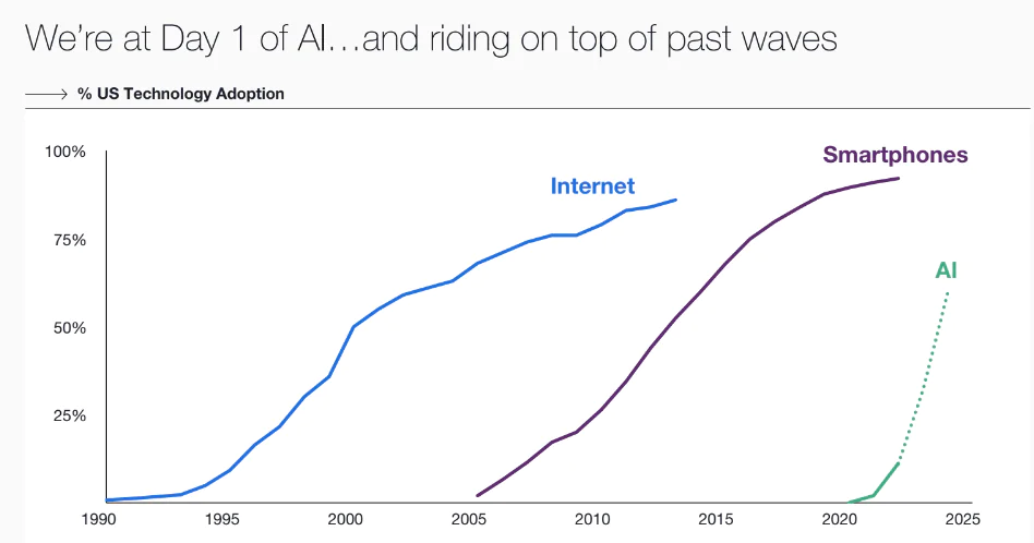 Ankieta przeprowadzona wśród około 600 dyrektorów przedsiębiorstw i ich świadomość możliwości AI zdaniem Coatue dowodzi, iż na horyzoncie pojawia się możliwość przyjęcia AI na dużą skalę. Aż 60% CEO w USA potwierdza, iż planuje implementować AI zarówno w nowych, jak i istniejących produktach.