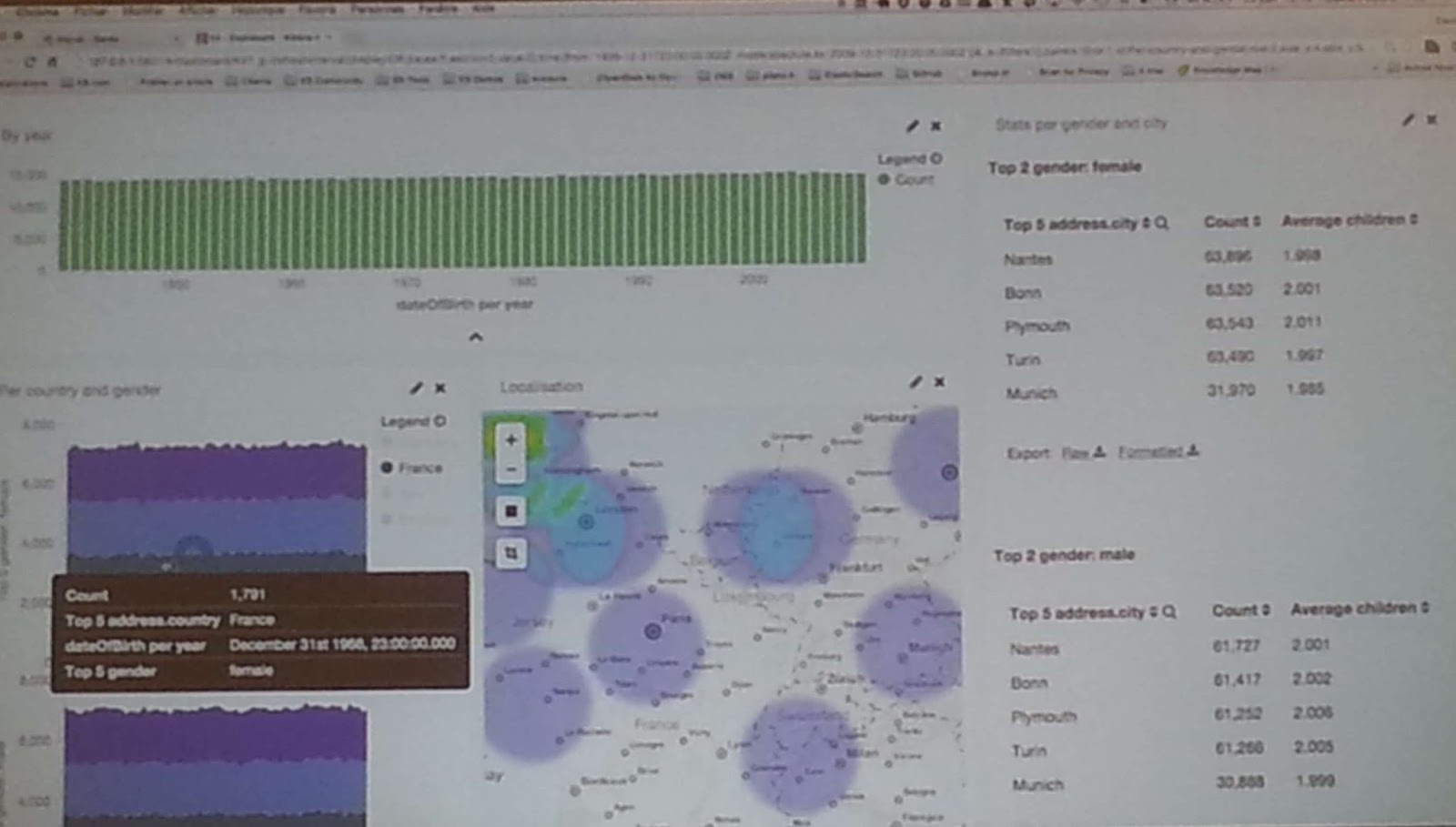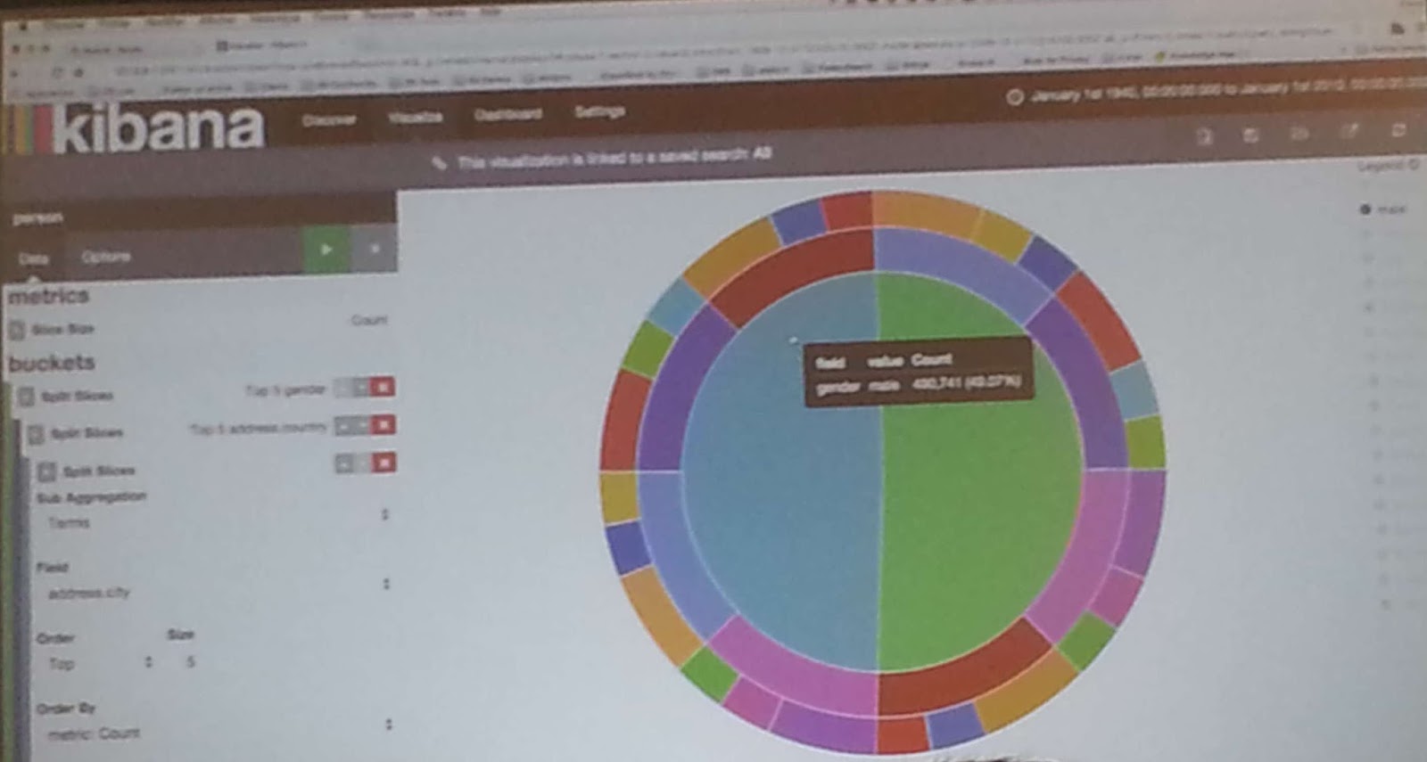 Dalej prelegent pokazał jak dzięki Kibany można w łatwy sposób wizualizować wszelakie dane jakie mamy zapisane w indexie Elastica.