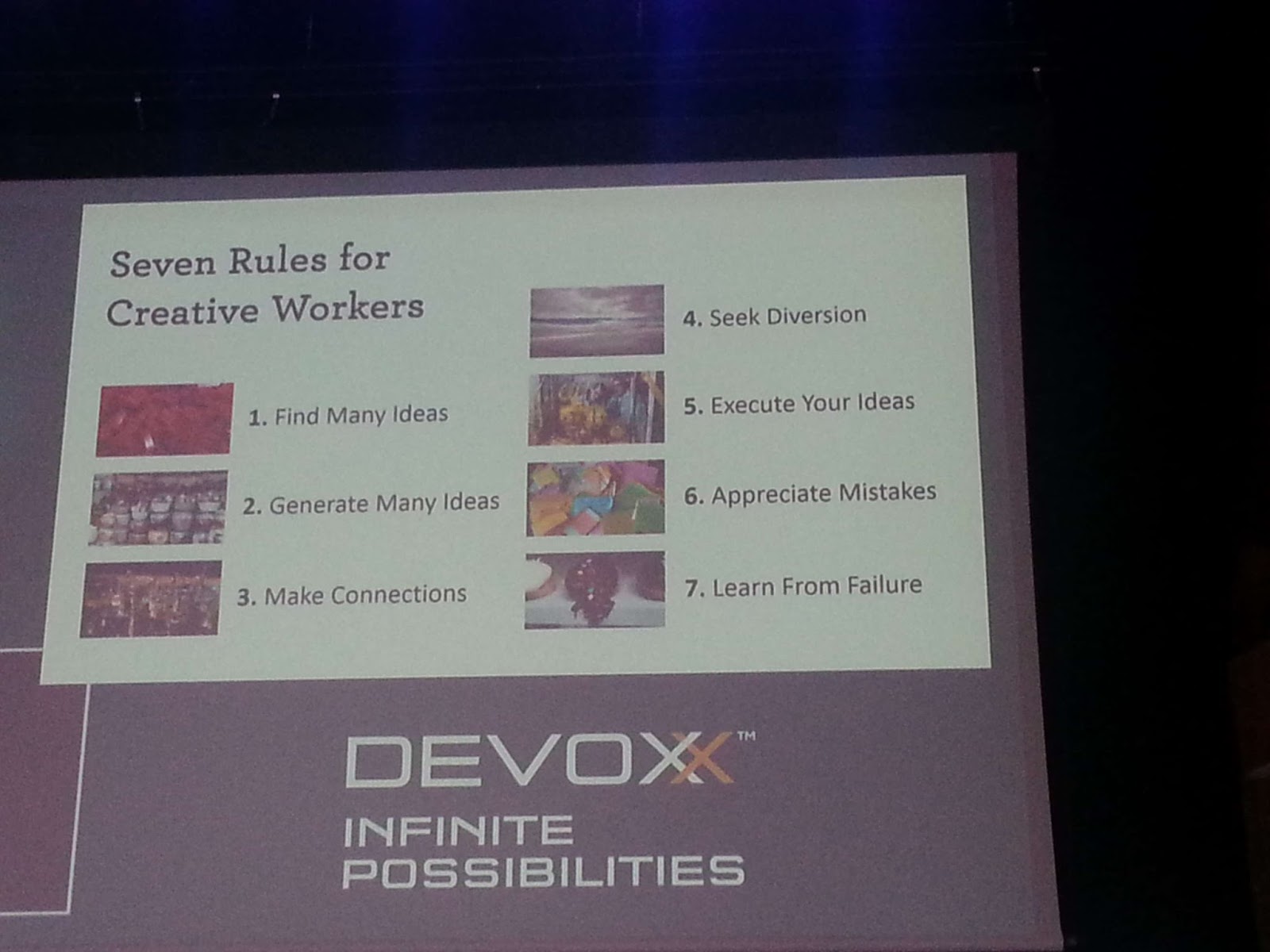 Prelegent przedstawił siedem zasad dla kreatywnych: