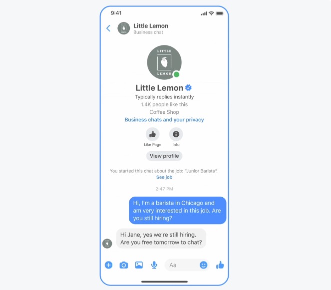 Facebook ma także ułatwić kontakt z ogłoszeniodawcami – ten będzie realizowany przez Messengera tak jak w przypadku innych ofert dostępnych na Facebook Marketplace. Z perspektywy pracodawcy wygląda to w taki sposób, iż będzie mógł tworzyć własne ogłoszenia dedykowanym przyciskiem lub poprzez narzędzia Meta Business, jeżeli jest się właścicielem konta firmowego na Facebooku.