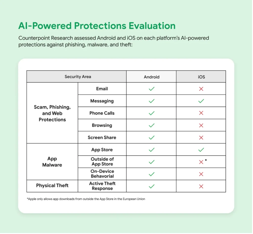 Google ujawniło, iż jego wbudowane mechanizmy zabezpieczeń oparte na sztucznej inteligencji chronią użytkowników Androida przed ponad 10 miliardami podejrzanych wiadomości i połączeń miesięcznie. Ponadto firma poinformowała, iż zablokowała ponad 100 milionów podejrzanych numerów w protokole Rich Communication Services (RCS) – następcy tradycyjnego SMS-a – zanim złośliwa wiadomość została w ogóle doręczona.