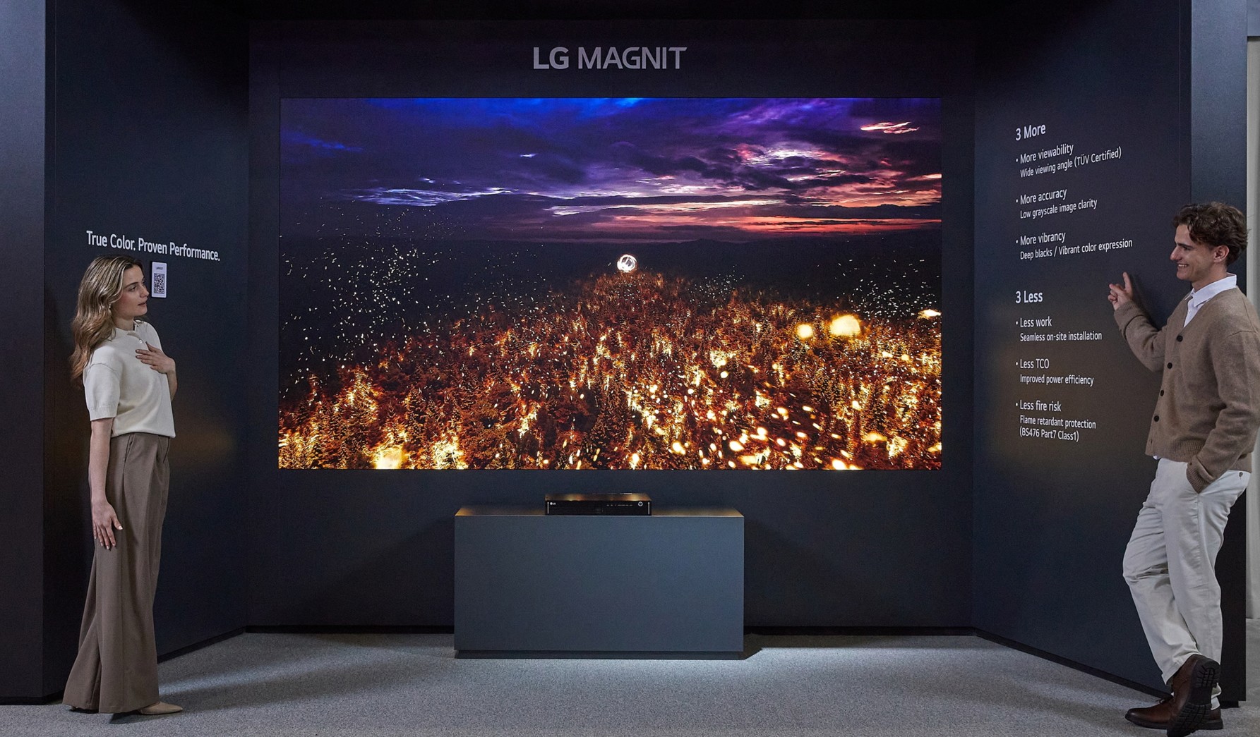 Na poziomie sprzętowym LG wykorzystuje ISE 2026 do wzmocnienia pozycji w segmencie wyświetlaczy premium. Firma zapowiada nową generację microLED‑owego LG MAGNIT o ultrawysokiej rozdzielczości – rozwiązanie kierowane do dużych ścian wideo, luksusowych przestrzeni retail czy sal zarządów. Równolegle prezentowane jest energooszczędne LG E‑Paper, projektowane z myślą o zastosowaniach, gdzie liczy się bardzo niskie zużycie energii – np. cyfrowe etykiety, rozkłady jazdy czy signage w miejscach o ograniczonym dostępie do zasilania. LG zaprezentowało też fasadę medialną, która łączy motywy koreańskiej kultury z nowymi formami wyświetlania, budując narrację, iż przyszłość przestrzeni komercyjnych to nie tylko obraz, ale całe, immersyjne doświadczenie klienta.