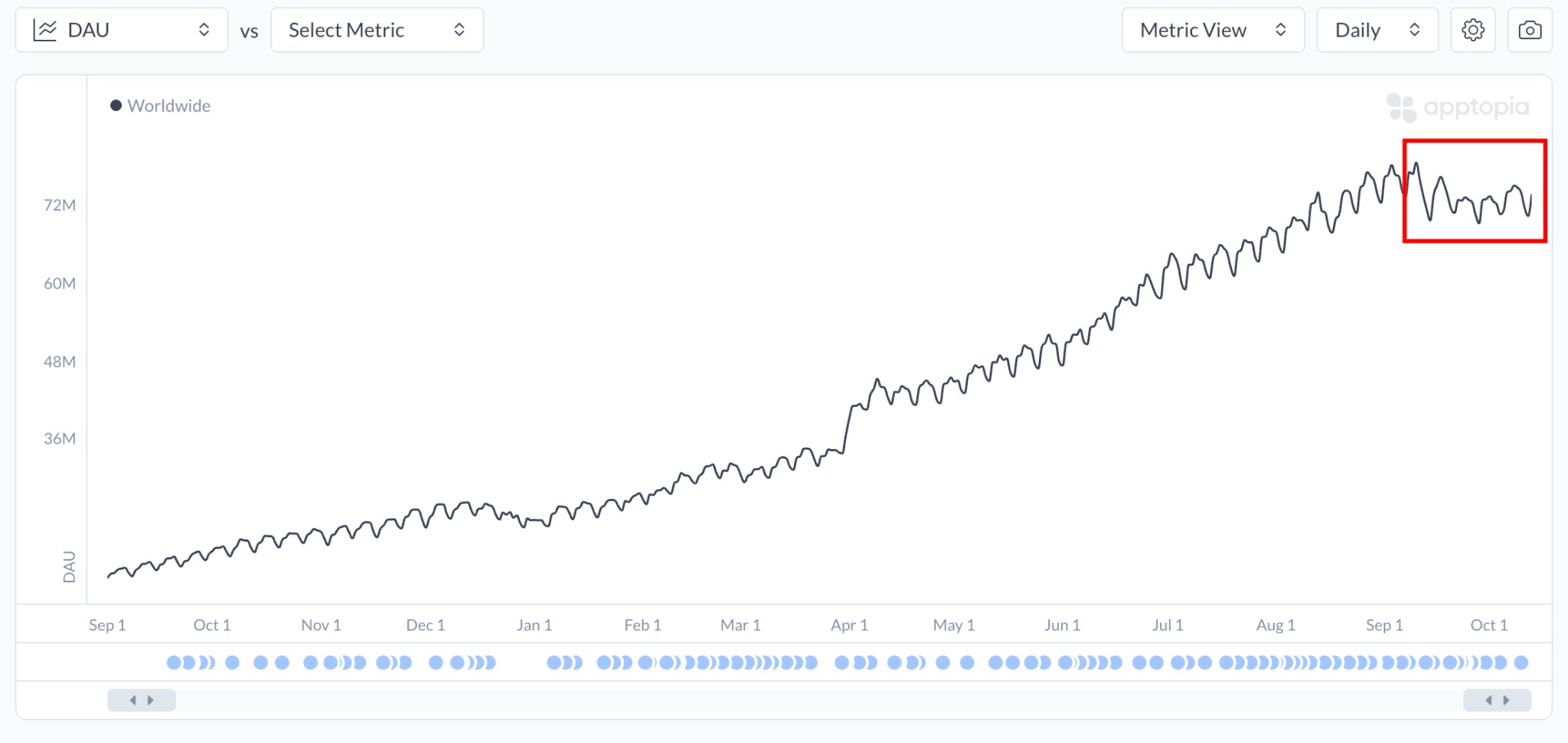 Jak opisuje serwis TechCrunch, zgodnie z danymi Apptopii – platformy analizującej w czasie rzeczywistym dane o aplikacjach – wzrost liczby pobrań mobilnej aplikacji ChatGPT zaczął słabnąć już po kwietniu, a do połowy października liczba pobrań w skali globalnej jest na kursie spadkowym o ponad 8 proc. w stosunku miesiąc do miesiąca.