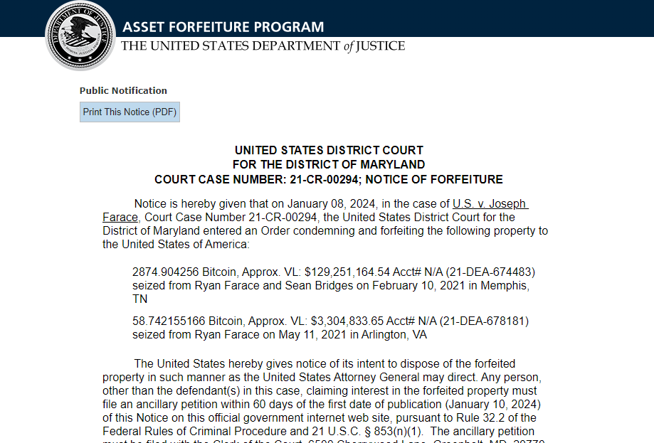 Sąd Okręgowy Stanów Zjednoczonych dla Okręgu Maryland wydał zawiadomienie („notice”), w ramach rozsupływania kolejnej sprawy powiązanej z Silk Road, niesławnej czarnorynkowej platformy do handlu nielegalnymi substancjami zamkniętej przez federalnych w 2013 roku.