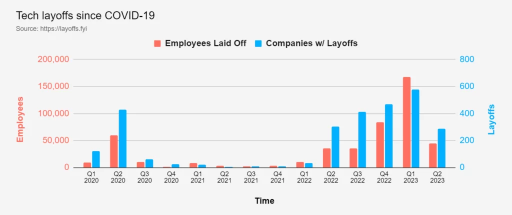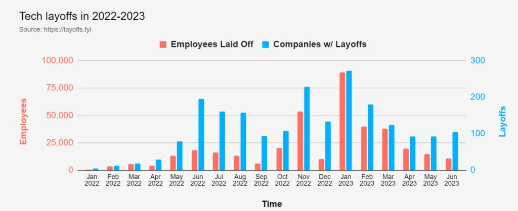 Największe przetasowania miały miejsce na początku roku 2023. Źródło: Layoffs.fyiNiekorzystna synergia