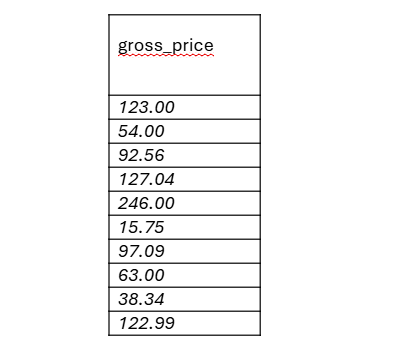 Suppose we want to calculate the gross price of each product utilizing the query: