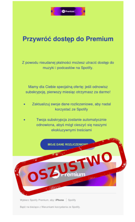 Fałszywe płatności za Spotify. Oszuści wykorzystują presję i strach przed utratą konta