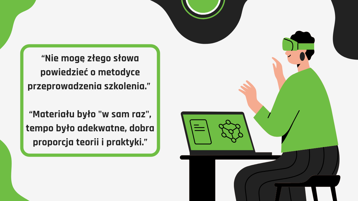 Nie zwalniamy tempa! Cały czas pracujemy nad kolejnymi tematami i testujemy je w formie beta-szkoleń. Dzięki udzieleniu nam wsparcia na naszym , niektórzy z Was mają okazję uczestniczyć w tych wyjątkowych warsztatach – i realnie współtworzyć przyszłość naszej oferty.
