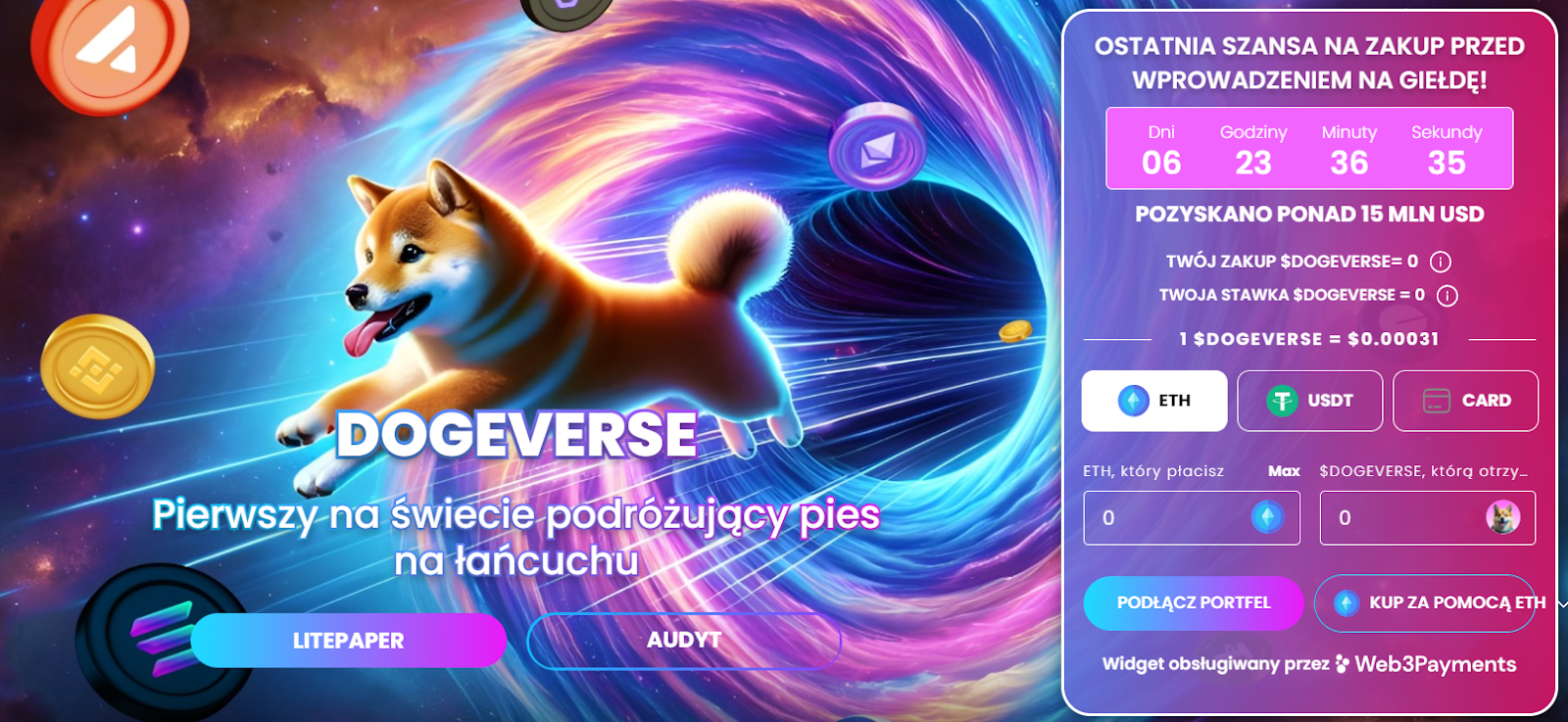 Wśród najnowszych projektów, które mają największe szanse zaskoczyć inwestorów, wymienia się Dogeverse. W fazie przedsprzedaży, której ostatni etap właśnie obserwujemy, projekt uzyskał 15 milionów dolarów.