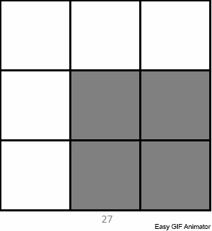 W programie nie będziemy posługiwali się tablicą symulującą kwadrat i komórki, a liczbą z zakresu 0-511, którą można opisać na 9 bitach, z których każdy będzie odpowiednikiem jednej komórki. I tak dla przykładu: