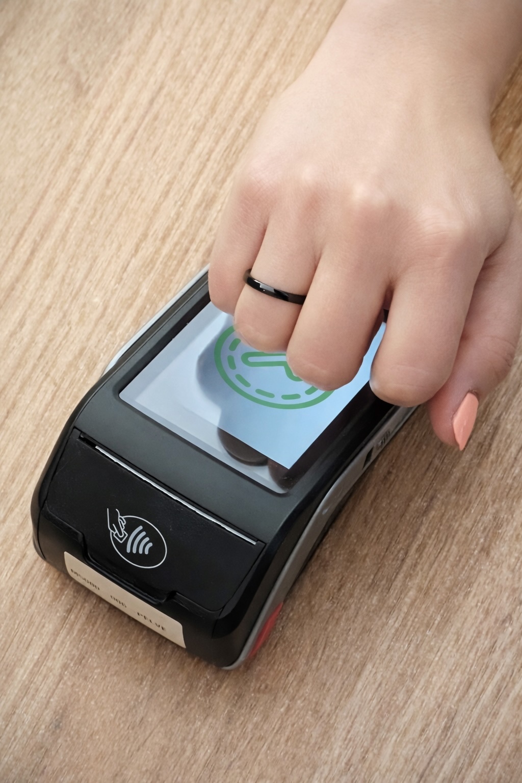 Obrączka obsługuje płatności bezgotówkowe, wykorzystując sprawdzoną technologię NFC. Dokładnie tę samą, co w plastikowych kartach płatniczych, naszych telefonach oraz smart zegarkach. Wystarczy przyłożyć taki pierścionek do zbliżeniowego terminala płatniczego w dowolnym sklepie, w razie konieczności wpisać PIN i gotowe. Portfel zostaje w kieszeni, nie trzeba szukać go w torebce albo po kieszeniach kurtki.