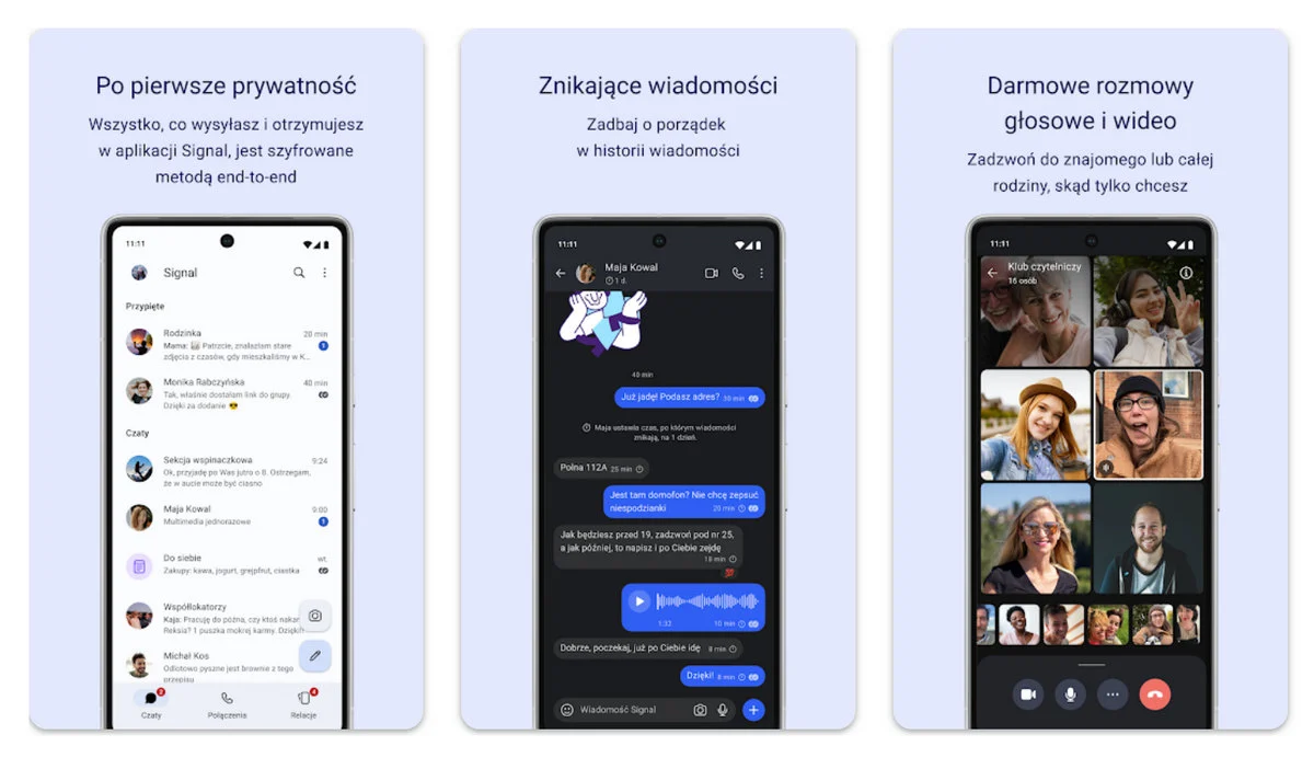 Signal rozwija się powoli, ale konsekwentnie. Nie znajdziesz tu botów, sklepów ani kanałów z memami. Zamiast tego masz proste funkcje: wiadomości, rozmowy głosowe, wideokonferencje, czaty grupowe i znikające wiadomości. Dodano także funkcje anonimizujące adresy IP podczas rozmów. To komunikator, który nie stara się być wszystkim naraz. Jego ambicją nie jest zastąpienie Facebooka czy WhatsAppa w całości, ale bycie najlepszym narzędziem do prywatnej komunikacji.