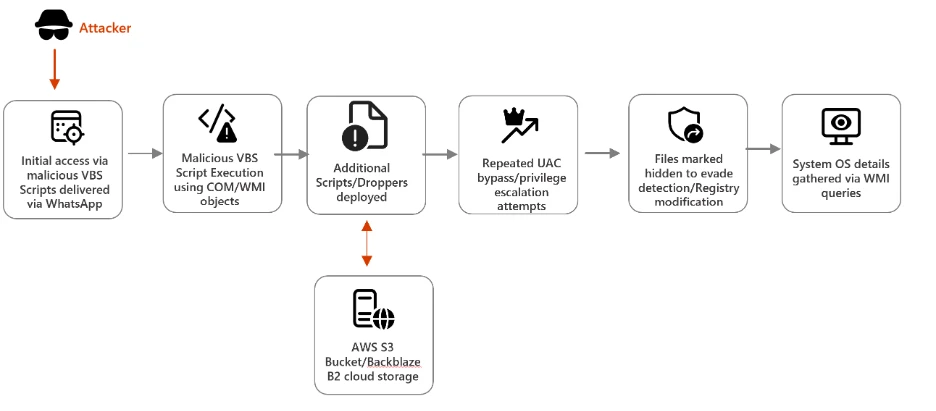 W opisywanej kampanii atakujący wykorzystują załączniki rozsyłane przez WhatsApp, które na pierwszy rzut oka wyglądają niegroźnie. W rzeczywistości są to pliki z rozszerzeniem .vbs, czyli skrypty Visual Basic, które system Windows może bez problemu uruchomić. Kluczowym elementem ataku jest przekonanie użytkownika do ich otwarcia. Nie dochodzi tu do wykorzystania luk w zabezpieczeniach, ale do manipulacji zachowaniem ofiary. Po uruchomieniu skrypt rozpoczyna działania w tle, kopiując wbudowane narzędzia systemowe Windows do ukrytych folderów i nadając im mylące nazwy, co utrudnia ich wykrycie.