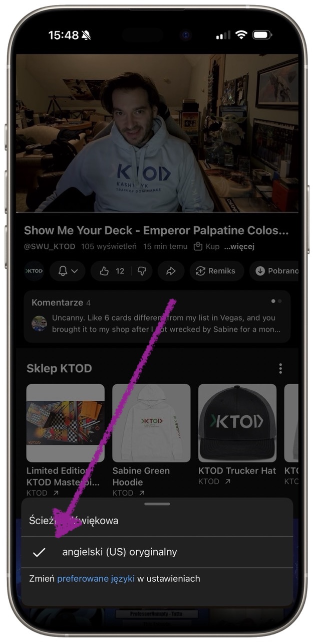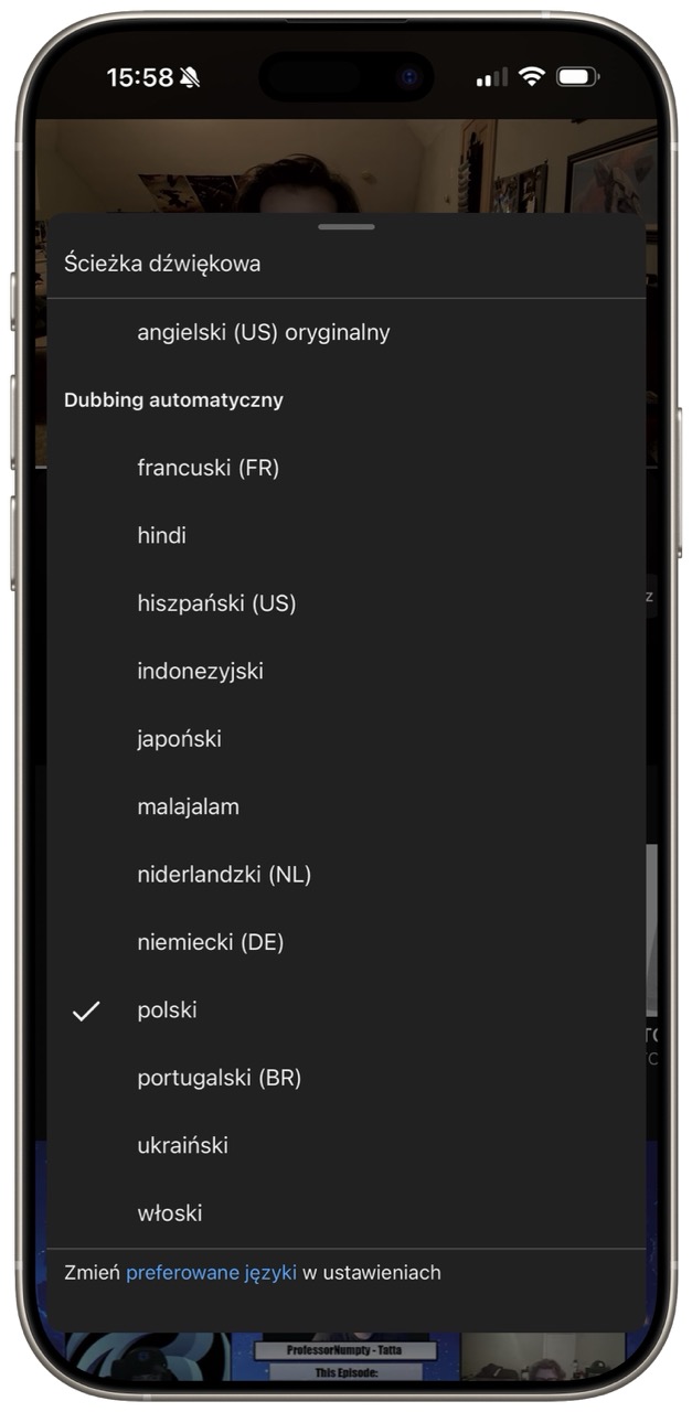 …oraz polski, aby uniknąć stosowania w nich dubbingu AIPozostaje tylko jeden problem – odtwarzacze osadzone w aplikacjach takich jak np. Patronite przez cały czas automatycznie włączają dubbing AI w angielskich klipach, ale przynajmniej da się to wyłączyć dwoma tapnięciami w ekran. W przypadku pobranych klipów po tym jak już taki samolot uniósł się w powietrze zostawaliśmy z tym automatycznym tłumaczeniem na polski jak Himilsbach z angielskim.