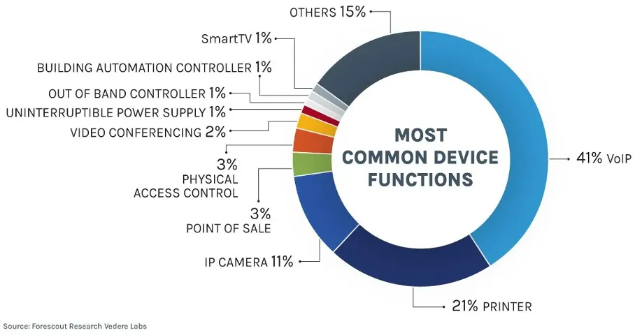 Analiza objęła ponad 10 mln urządzeń w ponad 700 organizacjach i wykazała, iż 2/3 (ok. 67%) wszystkich urządzeń nie jest już typowymi komputerami, serwerami czy laptopami – to urządzenia sieciowe lub xIoT. W samej kategorii xIoT stwierdzono m.in.: