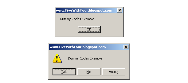 Czytając źródło stwierdzamy, iż program wyrzuci po kolei dwa jednakowe okna typu MB_OK z informacją. Ale rezultat jest taki: